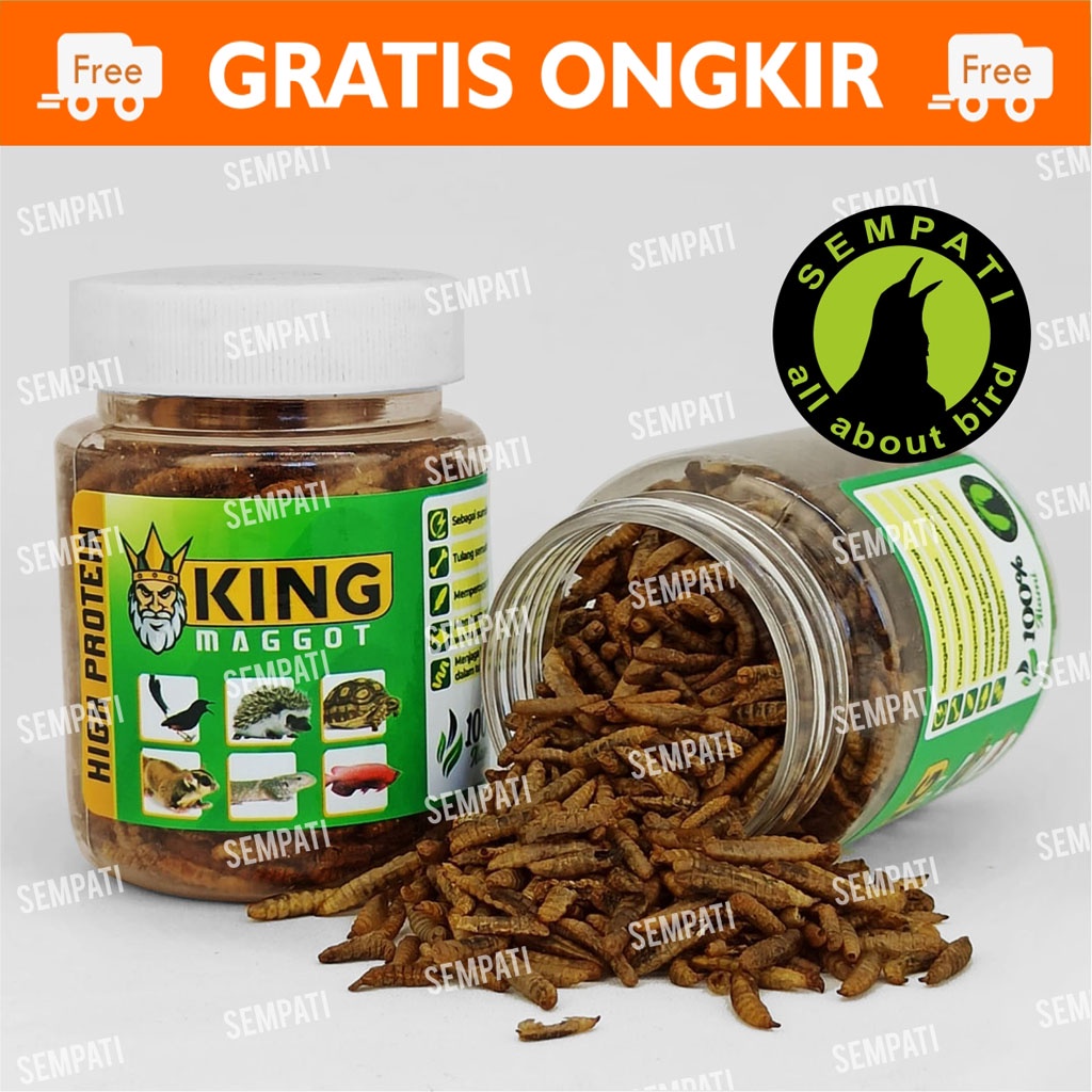 Produk KING MAGGOT SEMPATI BSF SUPER MAGOT MAGGOT KERING DRY FRESH MAGOT PAKAN BURUNG MURAI KACER ANIS LARVA BSF PAKAN MAKANAN BURUNG BERKICAU MGTSM ini sedang Diskon , Total dari awal dijual Produk ini dan Variannya terjual total 52 buah.